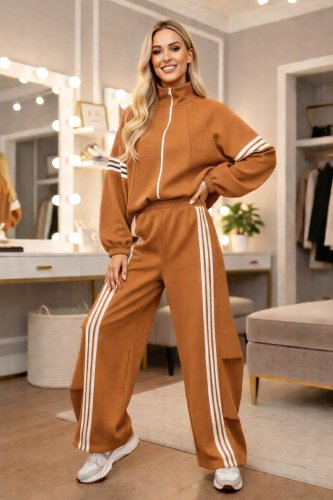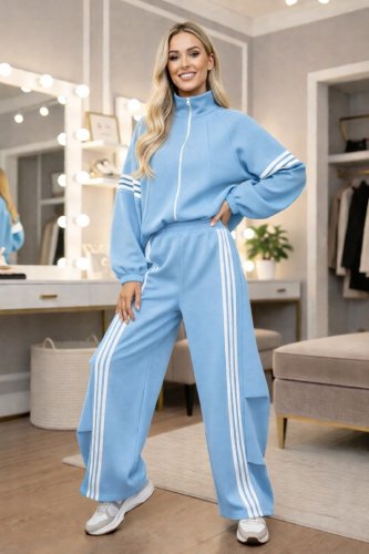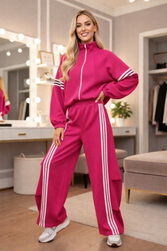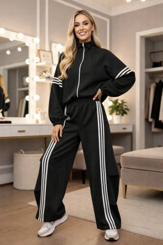 Yeni sezon ithal modal kumaş şerit ve paça detaylı fermuarlı ikili takım