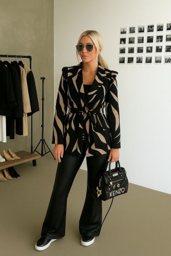 Kadın uzun kollu baskılı dalgıç ceket