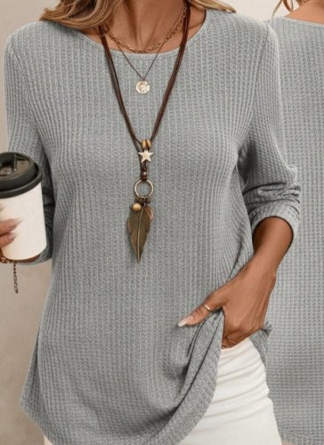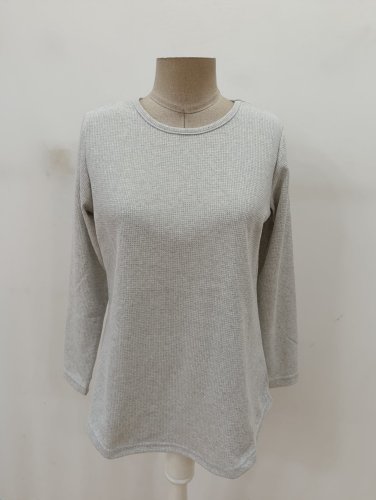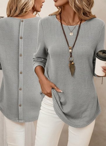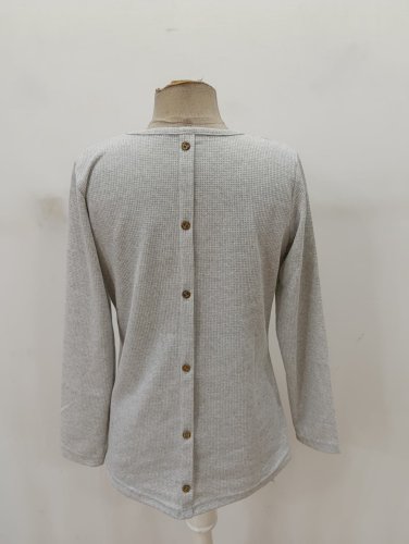 • Kadın uzun kollu yuvarlak yaka arkadan düğmeli waffle bluz