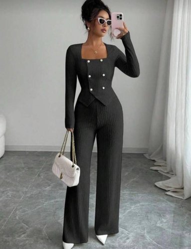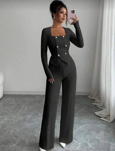 İthal bürümcük kumaş düğme detaylı ikili takım