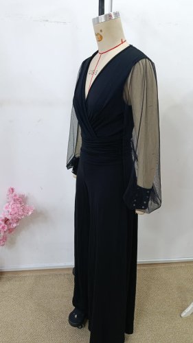 • Kadın uzun kollu kruvaze yakalı kolları tüllü viskon tulum
