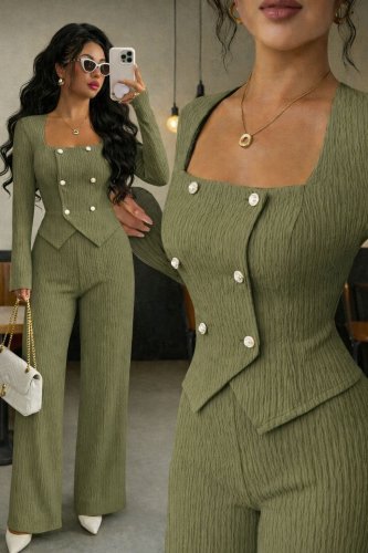 İthal bürümcük kumaş düğme detaylı ikili takım