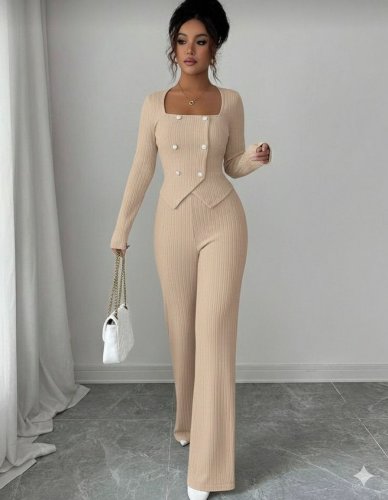 • İthal bürümcük kumaş düğme detaylı ikili takım
