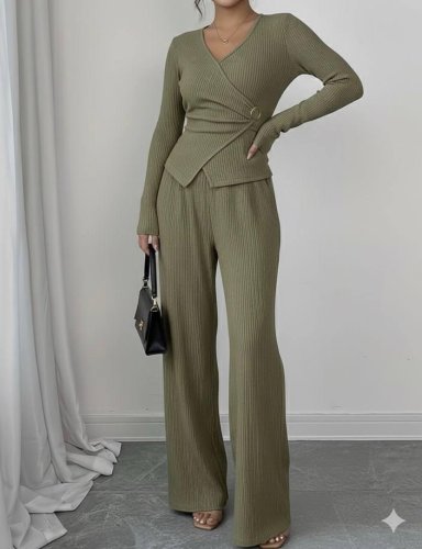 • Yeni sezon bürümcük kumaş toka detaylı bluz pantolon ikili takım