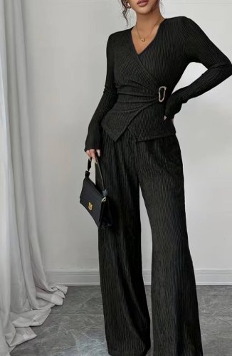 • Yeni sezon bürümcük kumaş toka detaylı bluz pantolon ikili takım