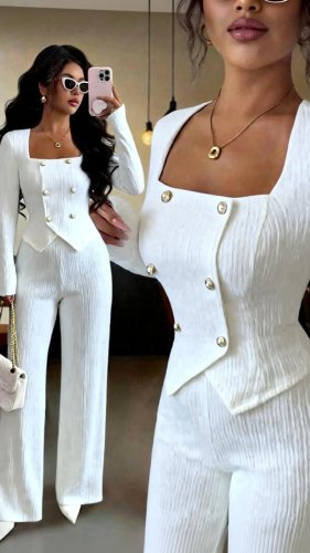 İthal bürümcük kumaş düğme detaylı ikili takım