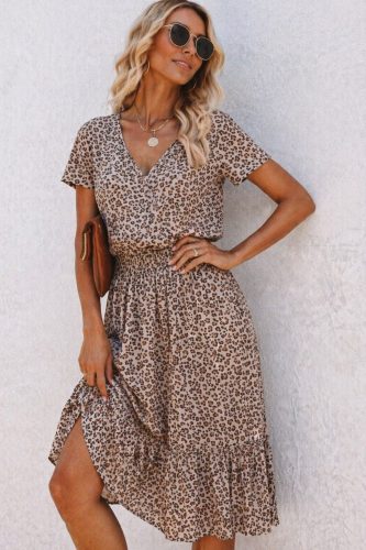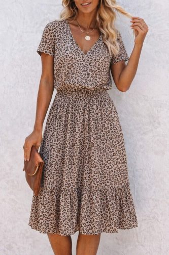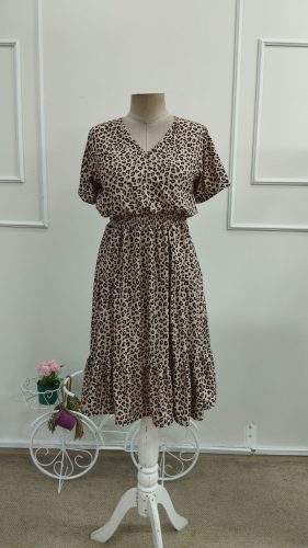 • Kadın kısa kollu v yakalı beli lastikli midi süprem elbise